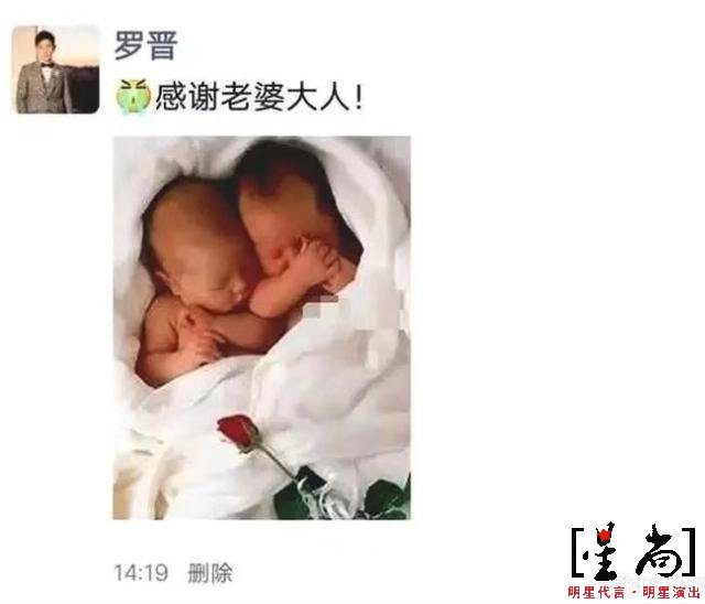 近日有網(wǎng)友曬出一張羅晉朋友圈截圖照,羅晉寫到"感謝老婆大人"然后還隨文配了一張雙胞胎嬰兒的照片