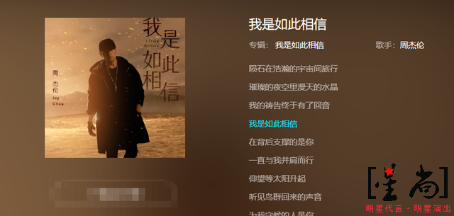 作為時(shí)代的偶像,明星代言周杰倫新歌《我是如此相信》在12月15日零點(diǎn)正式發(fā)布。