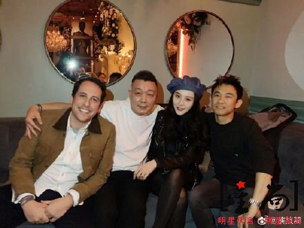 照片中范冰冰戴著暗綠色帽子,穿著黑色皮衣,留著大波浪長發(fā),五官精致笑容甜美,與眾主創(chuàng)合照站C位,很有排面。