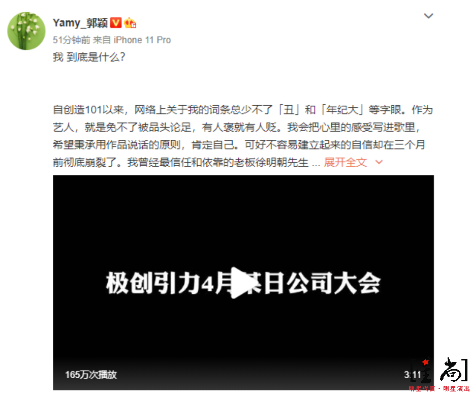 明星代言7月21日上午,前火箭少女101隊(duì)長(zhǎng)Yamy發(fā)文透露遭到公司惡語(yǔ)對(duì)待,并曝光了公司會(huì)議錄音,老板徐明朝在沒(méi)有Yamy參與的公司會(huì)議上對(duì)其外貌、能力等方面進(jìn)行人身攻擊。隨后前隊(duì)友楊超越、賴(lài)美云、Sunnee發(fā)聲力挺Yamy。